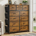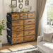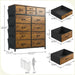 Bring efficient, stylish organization to any room with this 12-Drawer Tall Fabric Dresser in Rustic Brown. Built with a reinforced steel frame, wood-texture top, and removable fabric drawers, it provides a spacious and modern storage solution for bedrooms, closets, nurseries, and living rooms.Key Features