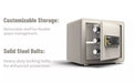 Organize your valuables with a smart interior layout, featuring a concealed lower chamber and adjustable shelving for flexible storage.