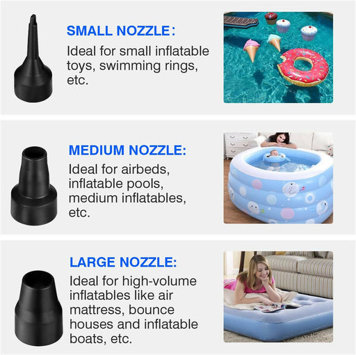 Chefic Electric Air Pump Portable Quick Fill Air Pump for Inflatable Couch, Air Mattress Bed,Swimming Ring, Inflatable Pool Toys, Home&Car Use Electric Inflator/Deflator Air Pump with 3 Nozzles, bLACK