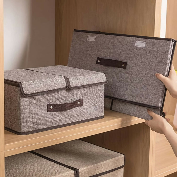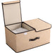 Foldable Linen Storage Box, 50 x 30 x 25 cm Double Lid Organizer Container (Beige)