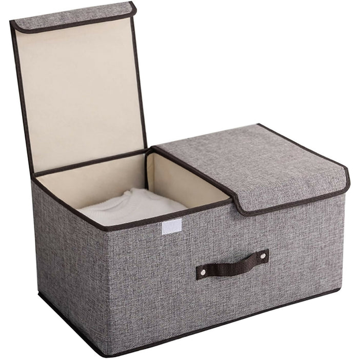 Foldable Linen Storage Box, 50 x 30 x 25 cm Double Lid Organizer Container (Grey)