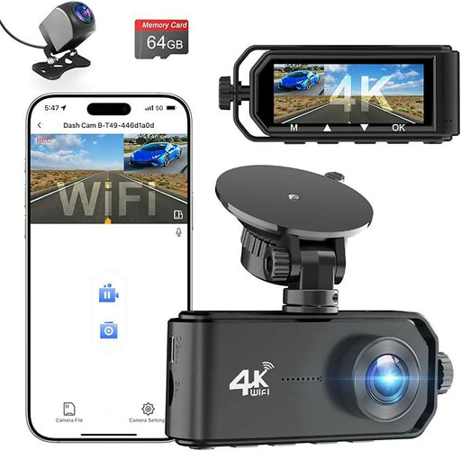 4K 前後雙鏡頭行車記錄器,4K+1080P 雙鏡頭行車記錄器,帶 WiFi,3.12 吋螢幕汽車行車記錄器,附贈 64G 記憶卡,超強夜視,Type-C 介面