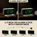 以這款現代化 雙鬧鐘數碼電子鬧鐘,讓你每天清晨神清氣爽。採用 1.4 吋綠色 LED 數字顯示屏,字體清晰易讀,即使遠距離也能輕鬆看到時間。亮度可調至四個級別,從高亮至全關,配合不同環境光線使用。
