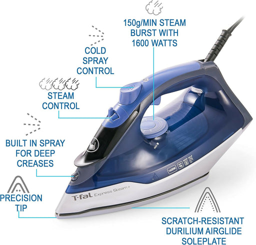 T-fal 快速蒸氣熨斗,快速效果,強力蒸氣增壓,5 檔設定,安全自動關機