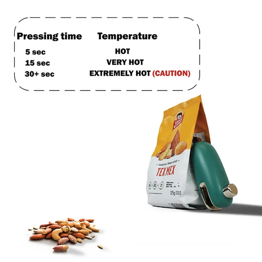 Megahomeshow.com有存貨-方便攜帶的小型裝置,是每個家庭的理想工具,能保持食物新鮮並節省包裝材料及重複包裝。 -快速且輕鬆開啟或重新封口大多數塑膠、鋁箔及紙袋,具備3段可調溫度設定。無需預熱。 -方便攜帶或收納,採用繩掛設計及背面磁鐵 -環保設計,透過USB快速充電