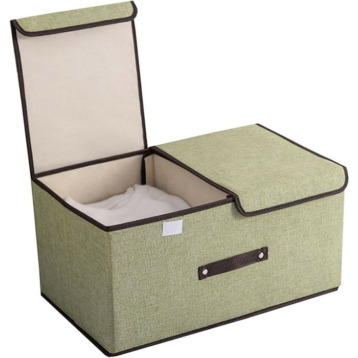 可折疊亞麻收納盒,50 x 30 x 25 公分雙蓋收納容器(綠色)
